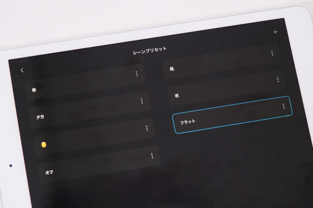 常設照明をタブレットから登録済みプリセットを選ぶだけで